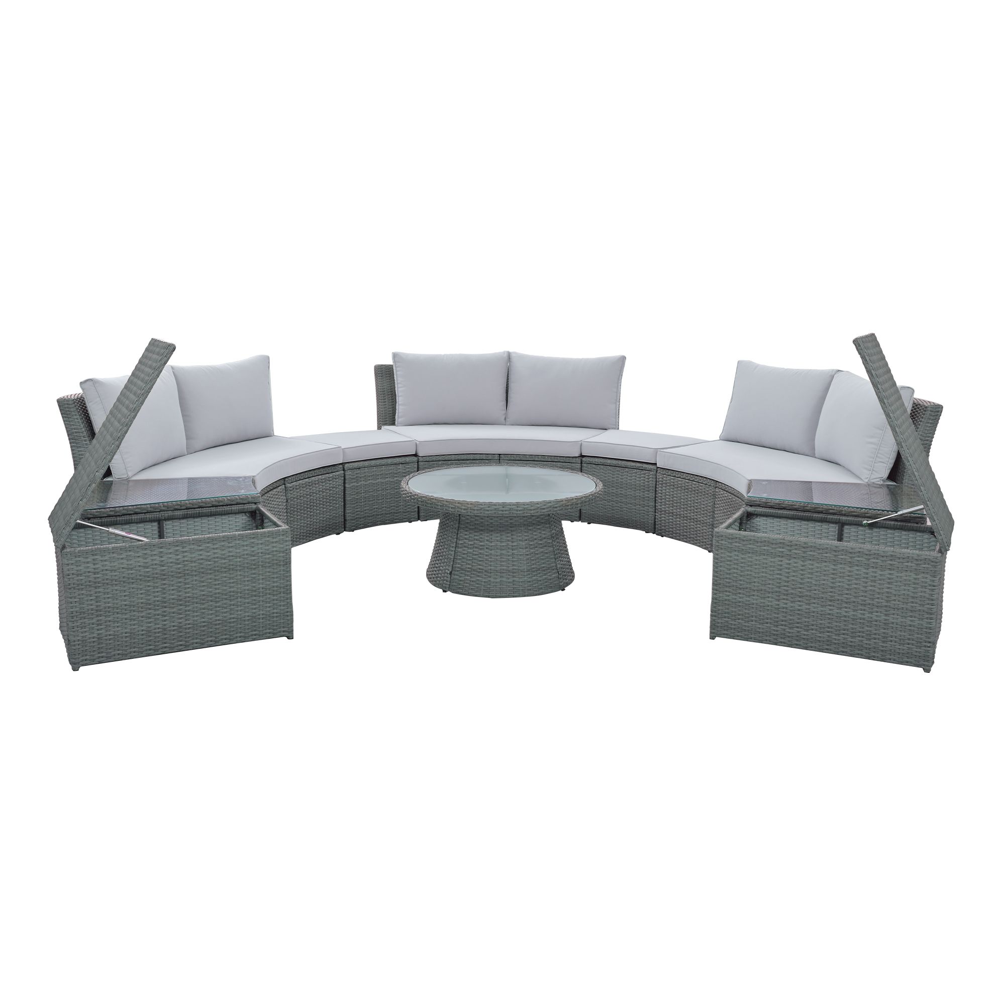 10-Piece Outdoor Sectional Half Round Patio Rattan Sofa Set; PE Wicker Conversation Furniture Set for Free Combination; Light Gray