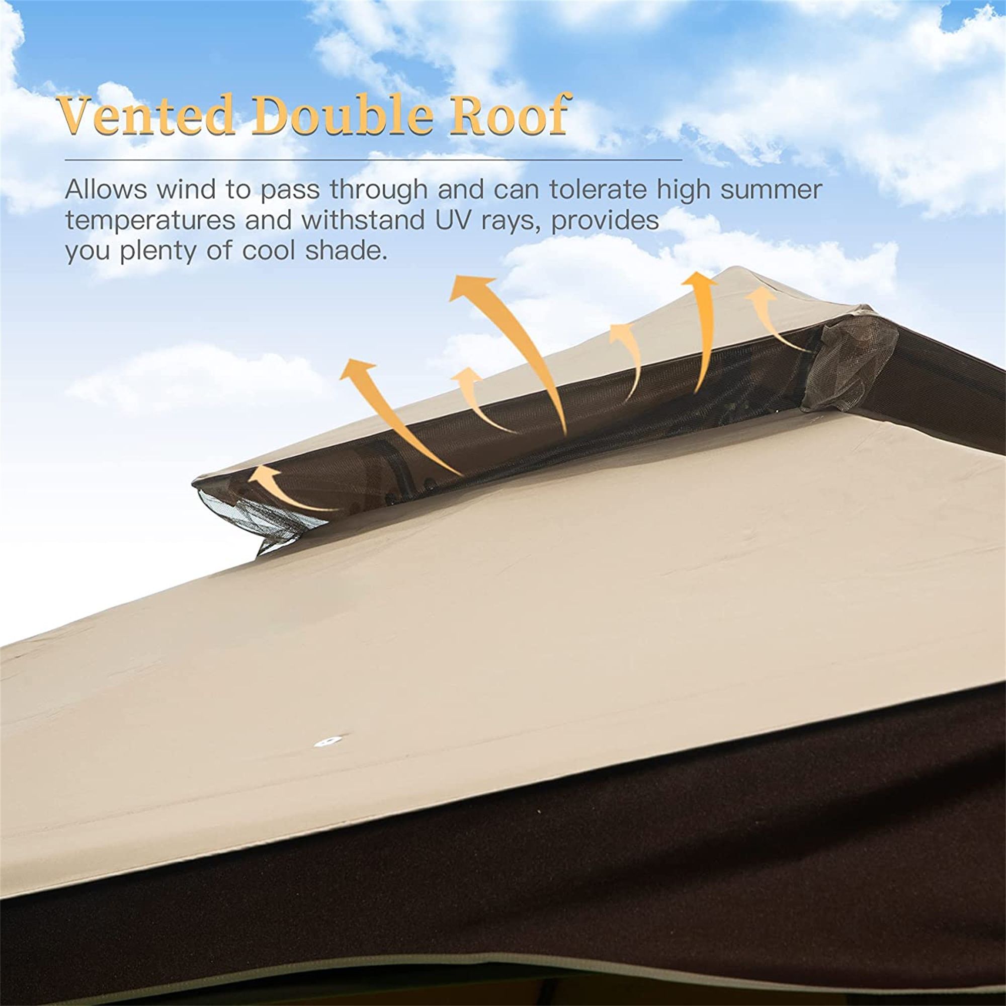 10'x13' Gazebo, Outdoor Gazebo with Mosquito Netting, Metal Frame Double Roof Soft Top Patio Gazebo Canopy Tent for Deck Backyard Garden Lawns (Khaki) 10'x13' Gazebo, Outdoor Gazebo with Mosquito Netting, Metal Frame Double Roof Soft Top Patio Gazebo Canopy Tent for Deck Backyard Garden Lawns (Khaki) 10'x13' Gazebo, Outdoor Gazebo with Mosquito Netting, Metal Frame Double Roof Soft Top Patio Gazebo Canopy Tent for Deck Backyard Garden Lawns (Khaki)