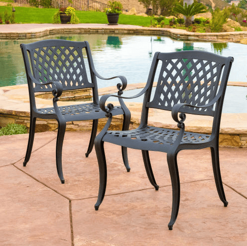Made from cast aluminum, these durable, high-quality chairs feature a mesh-style backrest and seat rest.