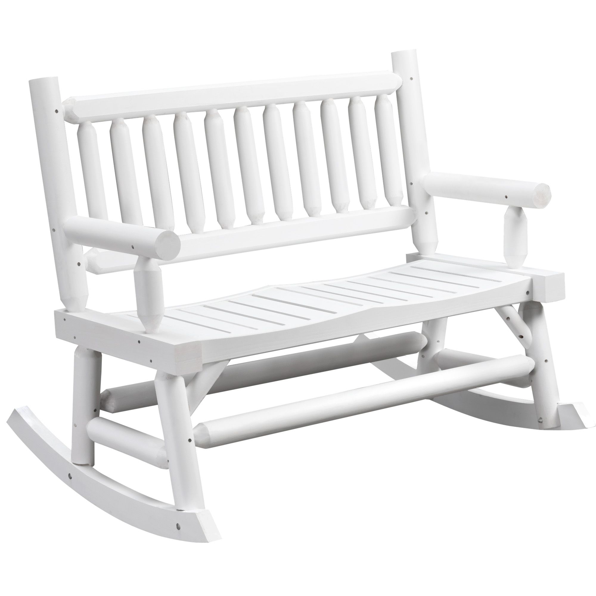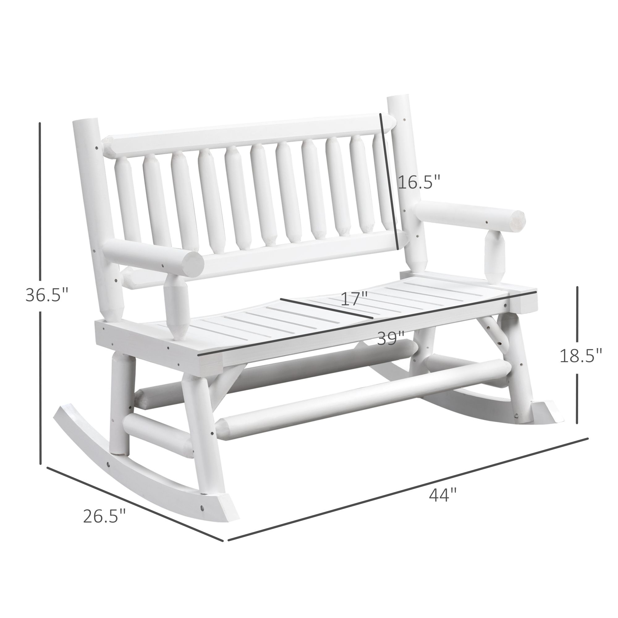 Home > Outsunny 2-Person Wood Rocking Chair with Log Design, Heavy Duty Loveseat with Wide Curved Seats for Patio, Backyard, Garden, White