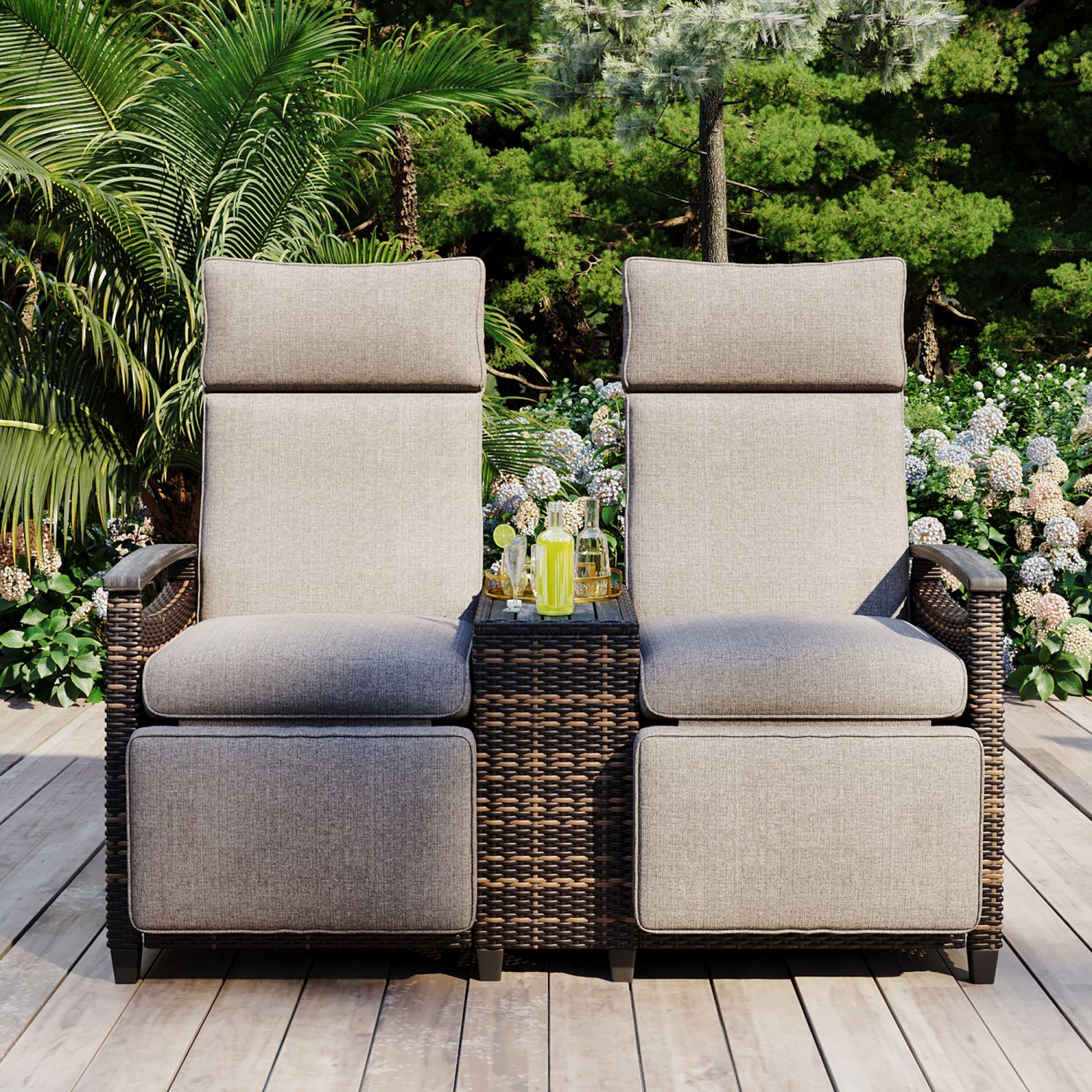 Adjustable Reclining Angle: The backrest and footrest of this lounge chair can be controlled independently by two buttons on the outside of the armrest, and can be freely adjusted up to 145 degrees to meet your relaxation needs in any outdoor space.